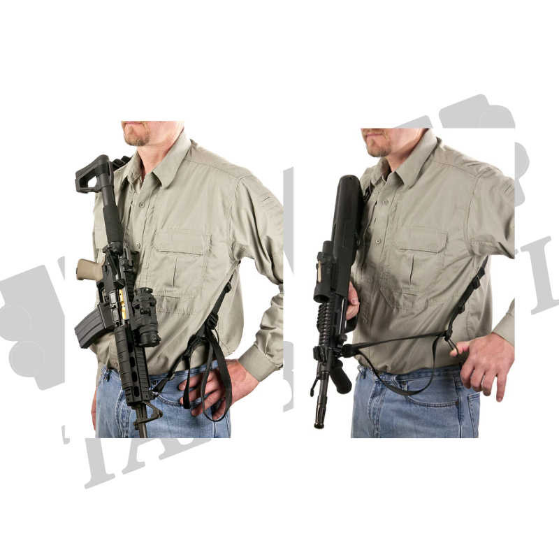 - حزام حمل ثنائي النقاط مع مشبك معدني للتثبيت على السلاح