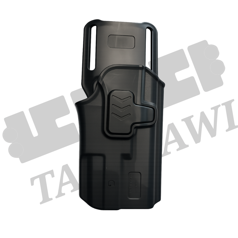 متوافق مع Glock 17/19/22/23/26 (الجيل 3–5)، Taurus G2C/G3C/G3 XL، Beretta 92FS/PX4/APX، S&W M&P Compact، Canik TP9 SF Elite، CZ P07/P09/P10C، وغيرها. غير مناسب للمسدسات الصغيرة جدًا (Micro) أو المزودة بمناظير/إضاءة.