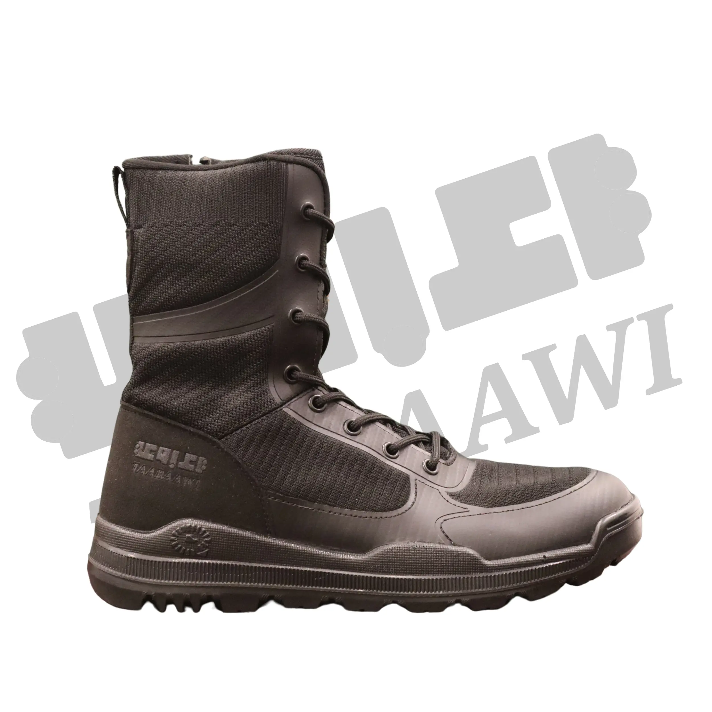 - ارتفاع 8 بوصات، عروة سحب للكعب،سحاب جاني مع خيط لون بيج - أسود